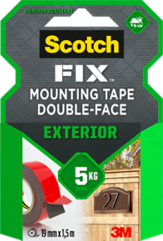 3M Scotch Fix Mounting Tape Black 19mm × 1.5m is a strong double-sided black adhesive tape designed for permanent or temporary mounting on various surfaces.