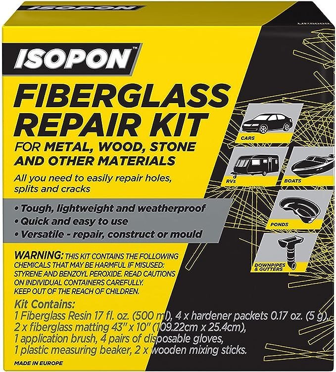 This ISOPON FASTGLAS Repair Kit contains everything you need to make a tough permanent, glass fiber reinforced repair to all kinds of objects.