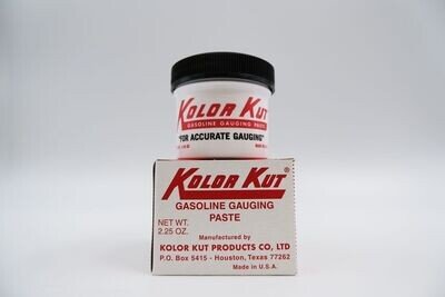Kolor Kut Gasoline Gauging Paste is a fuel level measuring paste designed for use in gasoline and other hydrocarbon liquid tanks. The paste is originally light pink and changes to red upon contact with gasoline, diesel, kerosene, or other hydrocarbon liquids, providing a simple and quick visual indication of fluid depth.