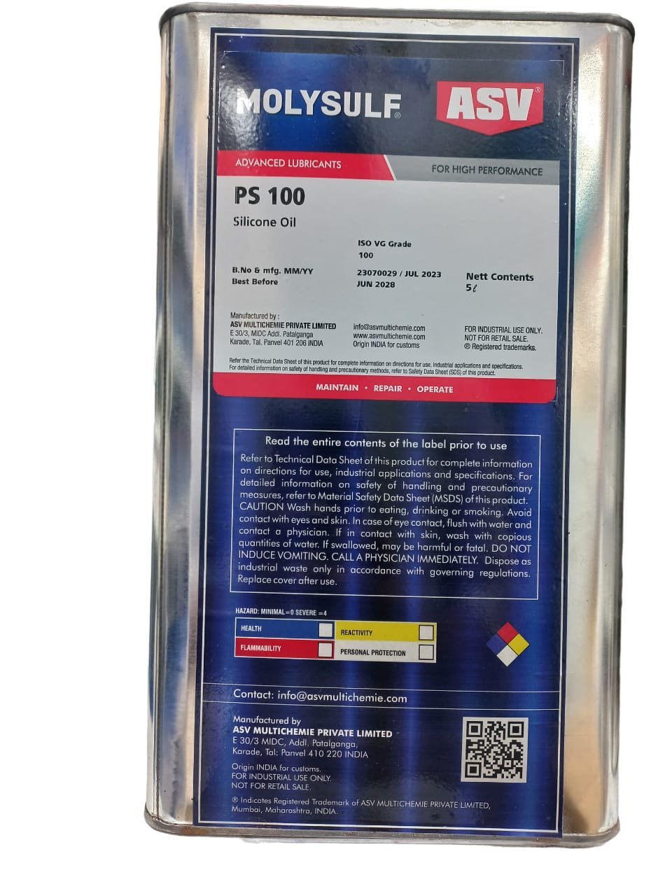 SV PS100 Silicone Fluid for Special Purpose Industrial Applications, 5 Ltr